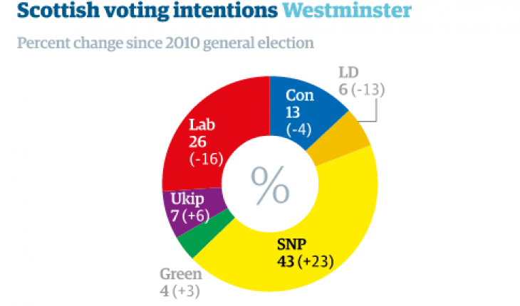 ICM has given us a Boxing Day surprise with an online Scottish Westminster poll for the Guardian, the fieldwork for which was conducted just over a week ago. As this is the first such poll by ICM this parliament, we can’t infer much about changes (other than since the last election) – the toplines are SNP 43 LAB 26 CON 13 UKIP 7 LIB 6 GRN 4. The shows a smaller SNP lead than other pollsters have shown, but two points of that are due to ICM’s spiral of silence adjustment, which helps Labour due to many more of their 2010 voters now saying don’t know (18% vs 6% for the SNP).